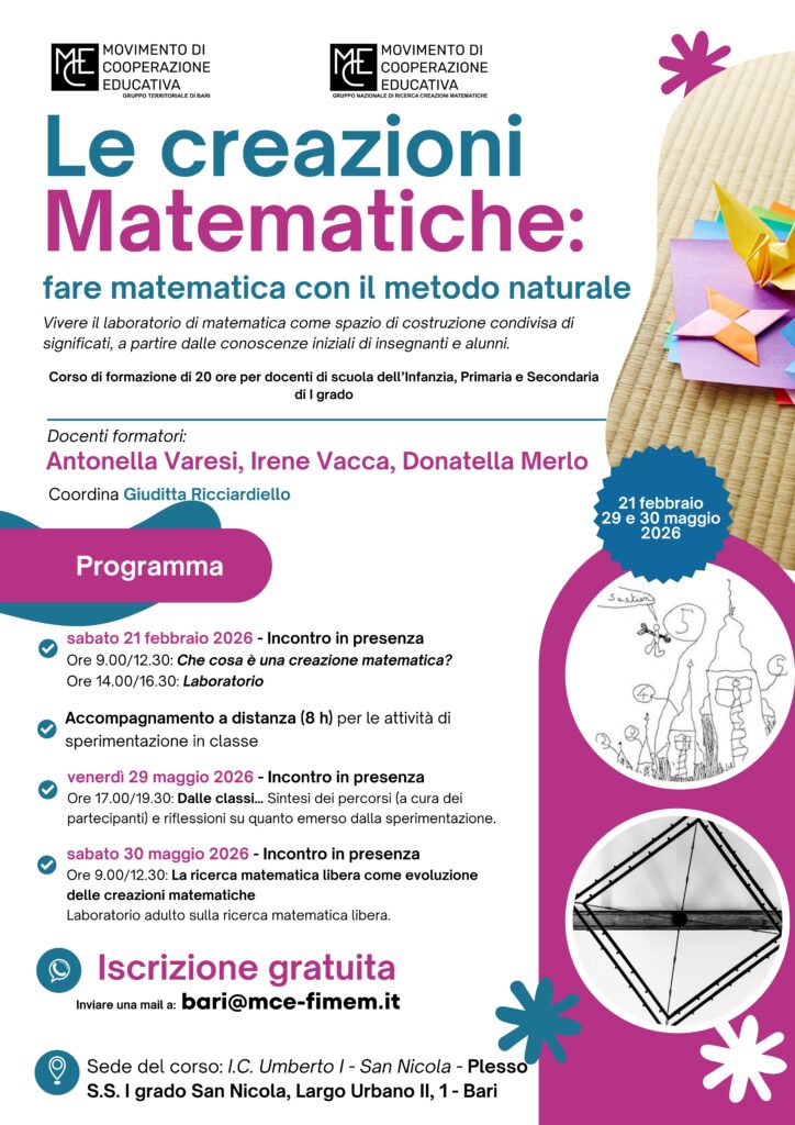 Per iscrizioni scrivere al gruppo territoriale all’indirizzo bari@mce-fimem.it
